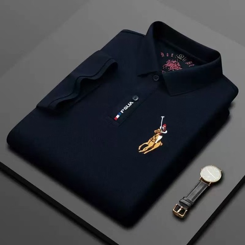 איכות גבוהה לגברים חולצת פולו חולצת נוחות בסגנון כותנה משי בד כותנה משי אנטי-קמטים רקומים חולצה עם צווארון פולו