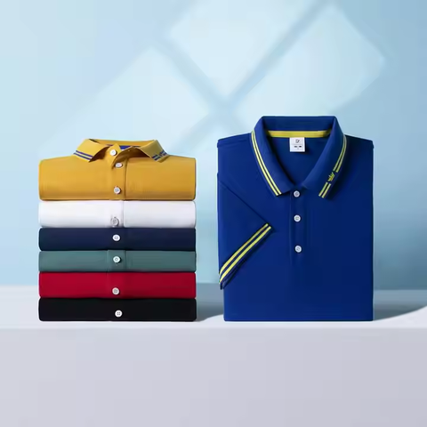 גברים בקיץ שרוול חצי מזדמנים לגברים עבור חולצת פולו כותנה באיכות גבוהה מותאם אישית צבע מוצק נגד קמטים